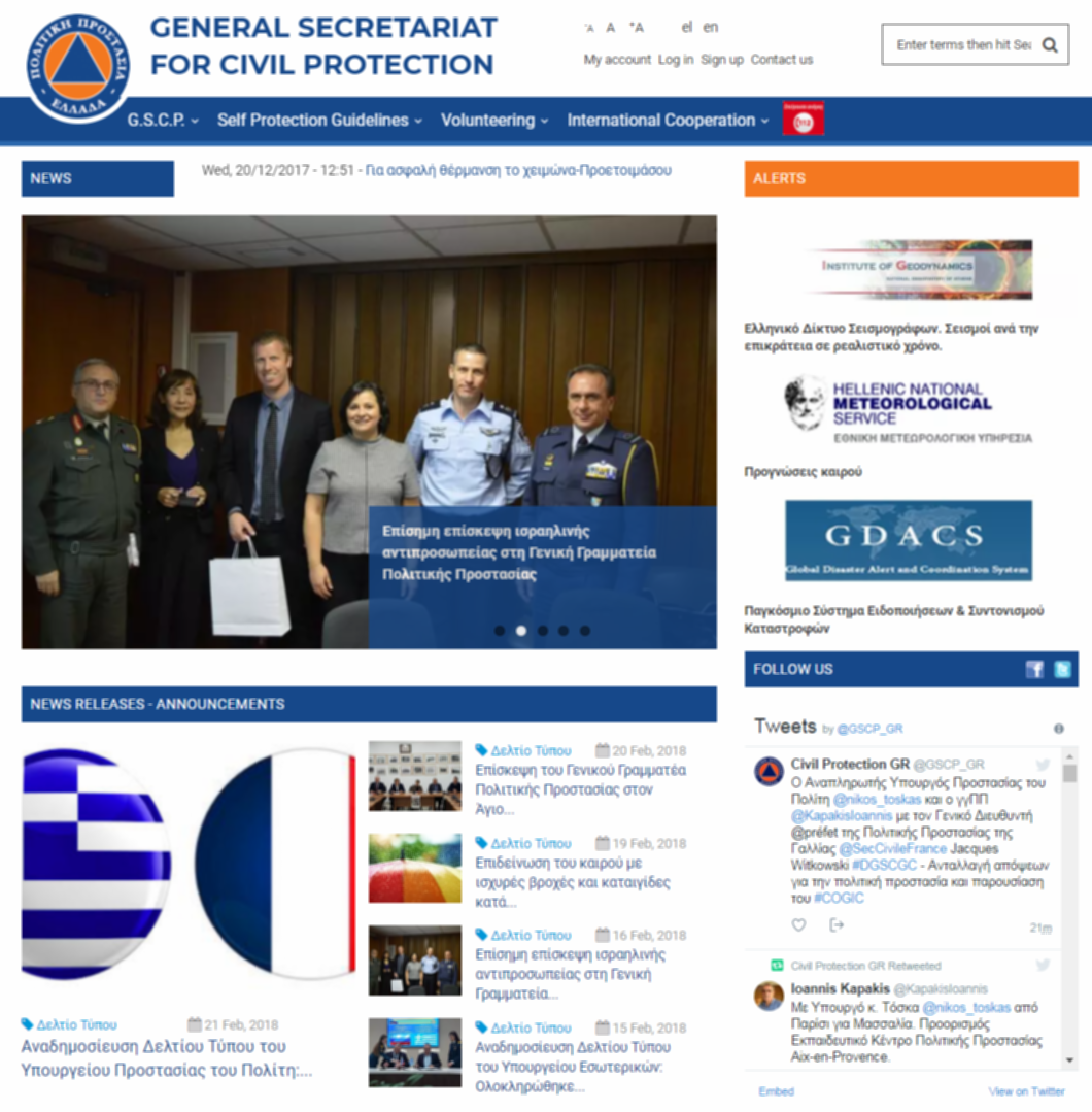 The General Secretariat for Civil Protection is the body responsible for promoting the country's civil protection relations with relevant international organizations and relevant civil protection agencies in other countries. Civil Protection's portal was developed in Drupal technology and our team is still supporting this project.