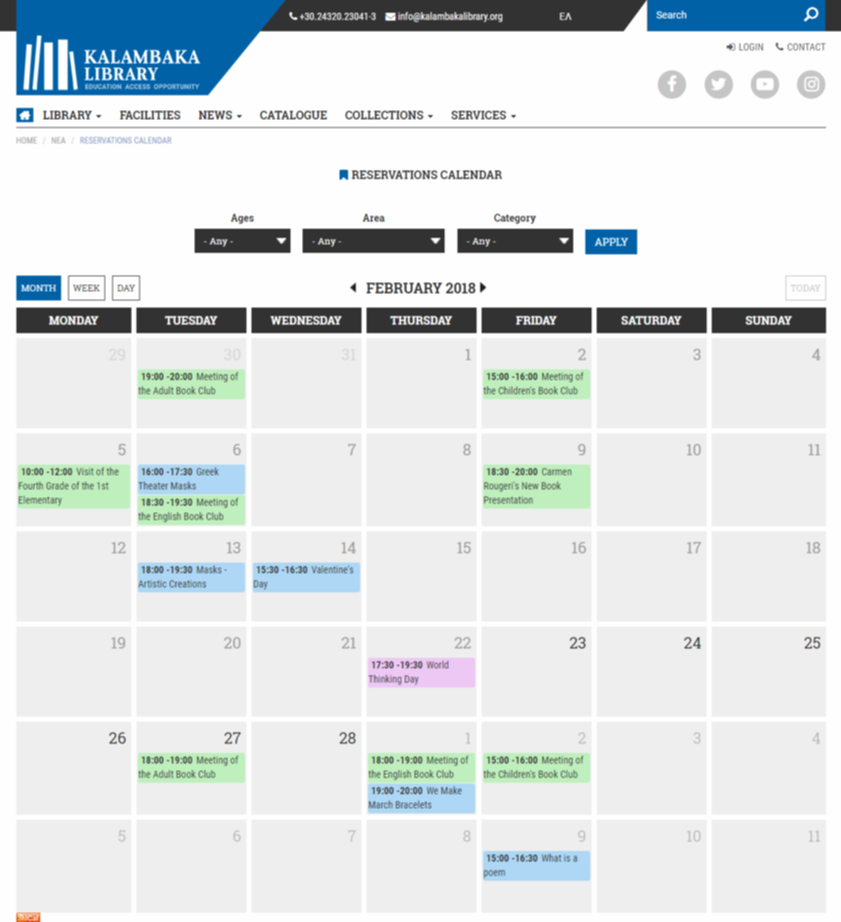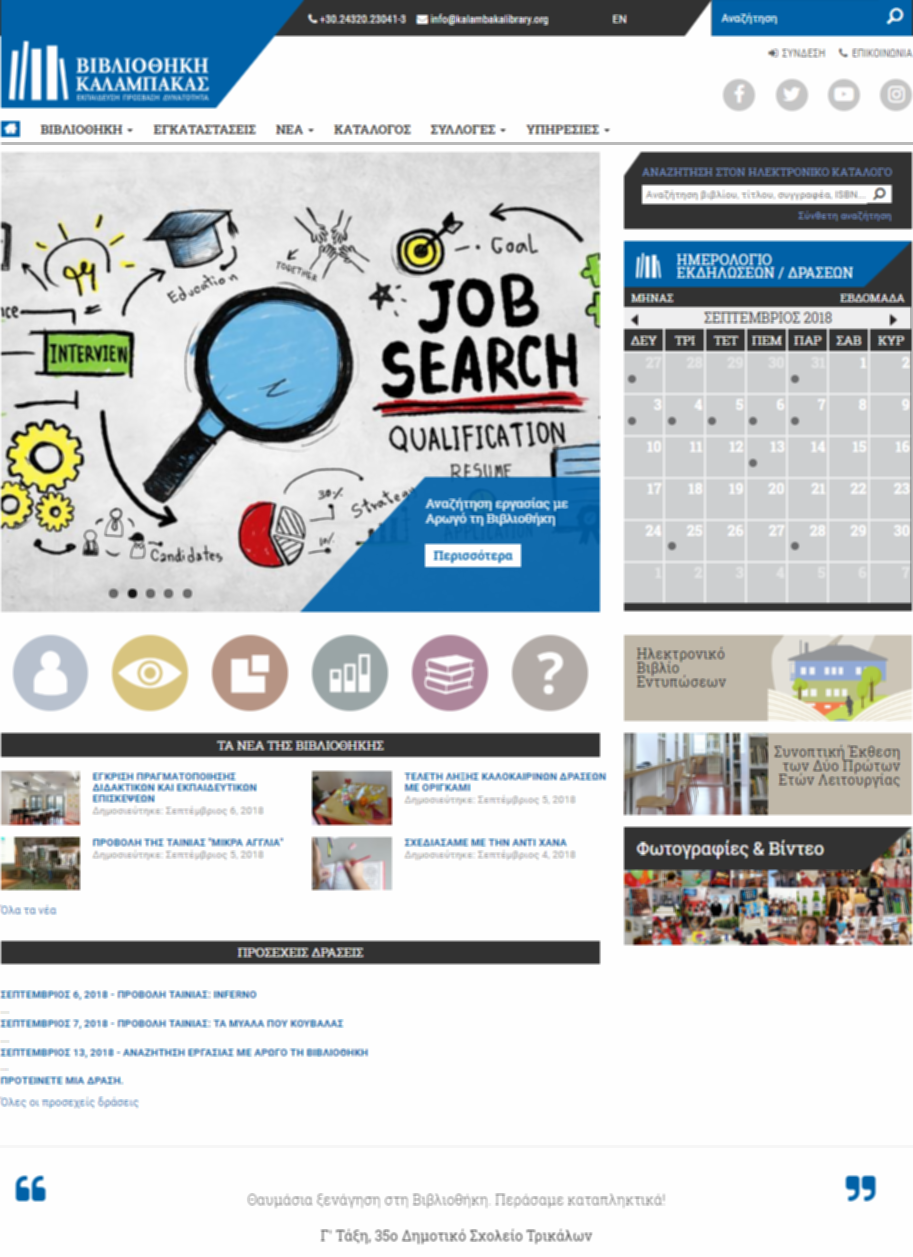 The portal of Kalambaka Library manages events, makes reservations of particular places of library, presents a unique calendar which showing all the events that taking place in the Kalambaka Library.